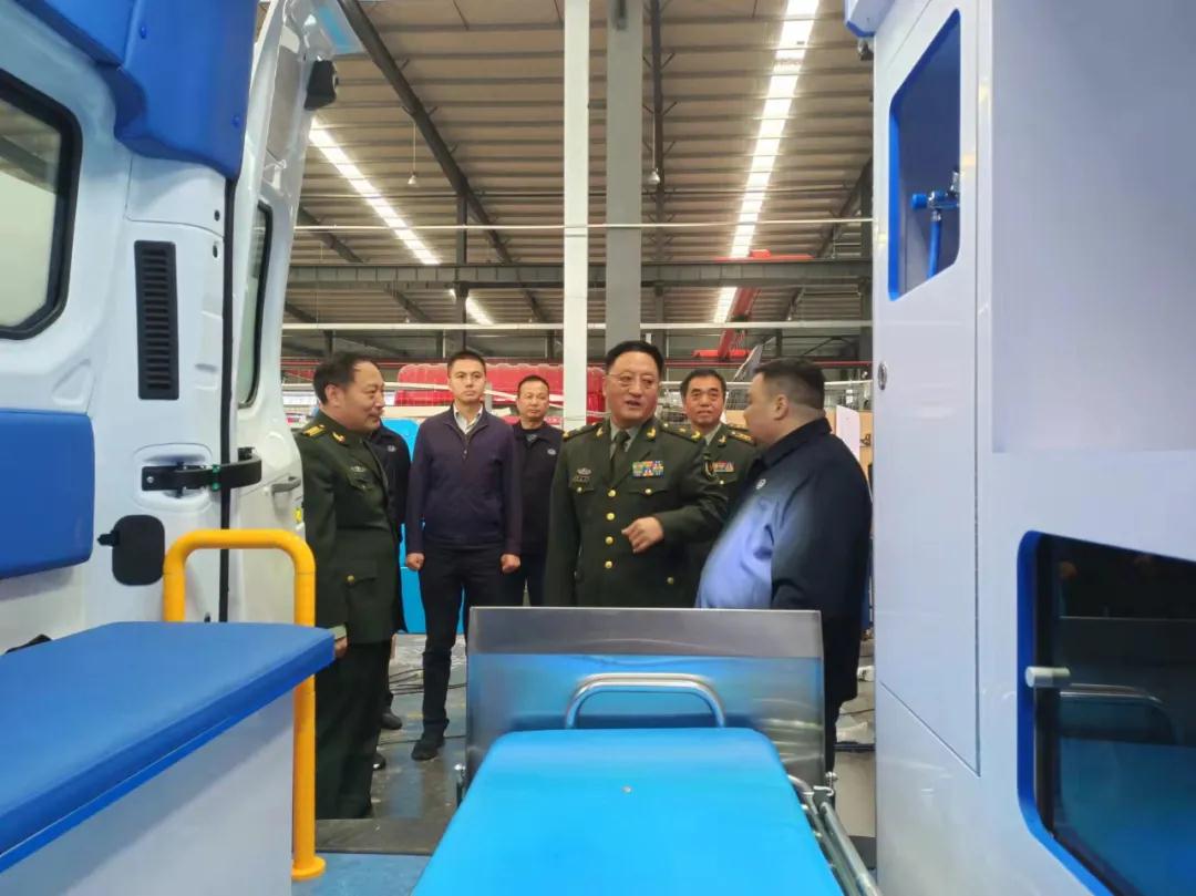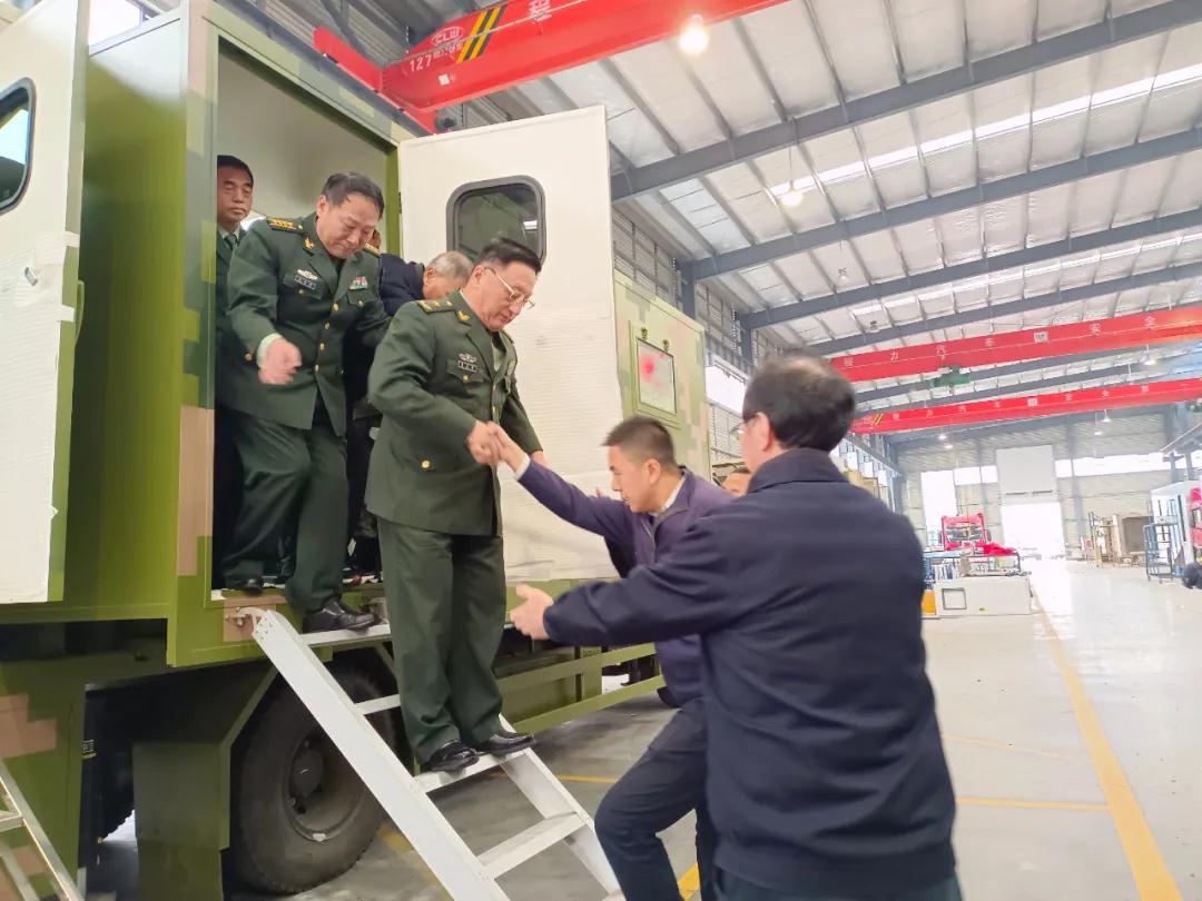 視察組參觀的第二站,來到了程力汽車集團應急保障車生產(chǎn)車間調(diào)研,對程力野外露營車、淋浴車、餐車、被服洗滌車、電源搶險車、排澇車等軍民兩用裝備的生產(chǎn)工藝與產(chǎn)能,表示出濃厚的興趣;當首長們了解到中國神舟十三返航英雄們,所用的地面后勤保障醫(yī)監(jiān)醫(yī)保醫(yī)療專用車,也是程力公司所生產(chǎn)的情況后,大加贊許。